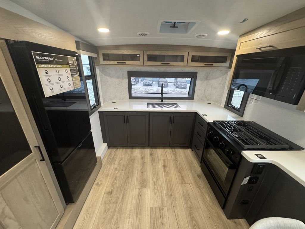 The 2026 Rockwood Signature 290FK is a standout choice for couples or small crews who want a premium fifth wheel with residential comforts — a bright front kitchen, a roomy mid living area, a practical full bath, and a private rear bedroom. Built with Rockwood’s Signature construction package, it’s built to last, travel well, and feel like home wherever you camp.