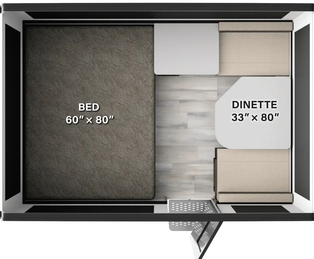 This simple, but comfortable camper is sure to meet your needs while you explore the outdoors. Dine at the 33" x 80" booth dinette which doubles as additional sleeping. The 60" x 80" bed is sure to bring a great night's rest!