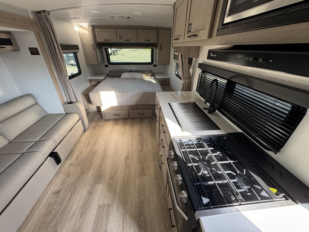 The 2026 Rockwood Mini Lite 2109S is a top pick for anyone wanting a high-quality, ultra-manageable trailer with all the essentials—and a few luxuries too. The Murphy bed makes the most of every inch, while the rear bathroom and full kitchen give you the space and features you need to camp in comfort.