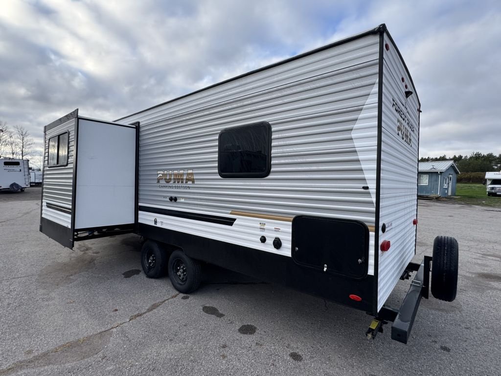 The 2026 Puma 211RKCE is a fantastic choice for couples or small families who want a trailer that’s easy to tow, comfortable to live in, and full of smart design touches. With its efficient rear kitchen, roomy dinette slide-out, and comfortable front bedroom, it offers all the amenities of home in a lightweight, travel-ready package.