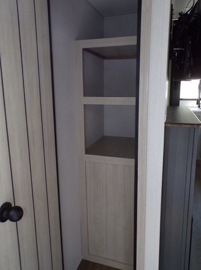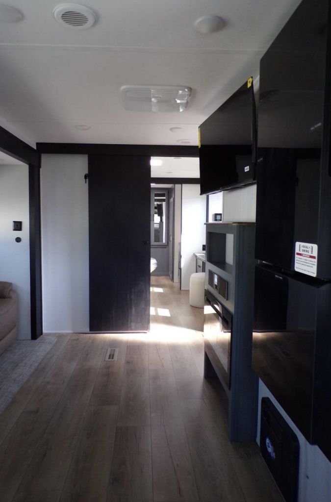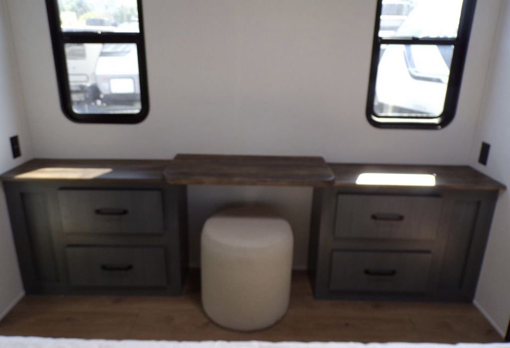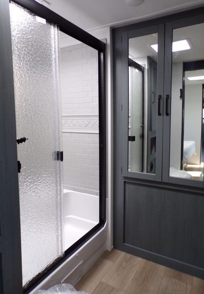 At the very front of the trailer is the spacious front bathroom, giving you extra room compared to many travel trailers.