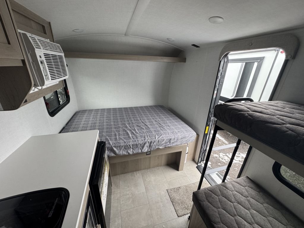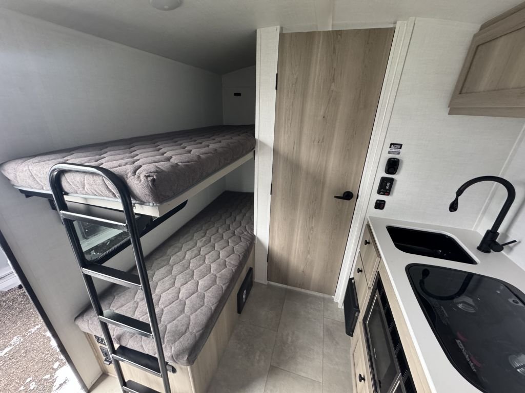 The front of the 13LE features dual twin beds that can easily convert into a spacious king bed using the center insert. This flexible setup makes it perfect for couples or friends traveling together. You’ll also find: