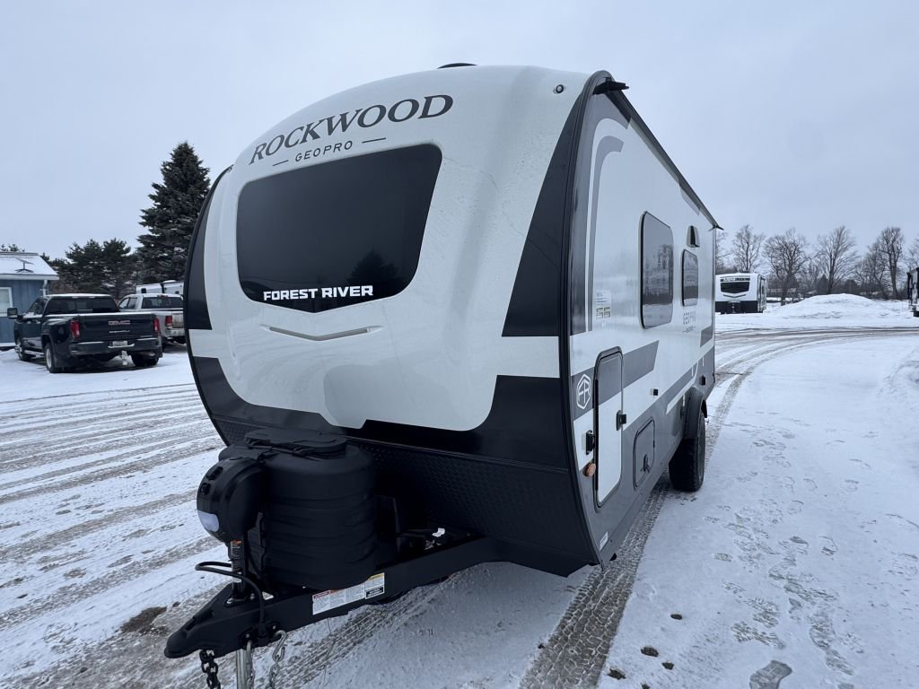 The 2026 Rockwood Geo Pro 19FD is a lightweight, feature-packed travel trailer built for explorers who want to go places — from national parks and beaches to backroads and boondocking spots — without towing a large rig. With a functional layout, smart storage, and a rugged-ready build, the 19FD is perfect for couples, solo travelers, or small families seeking simplicity and comfort.