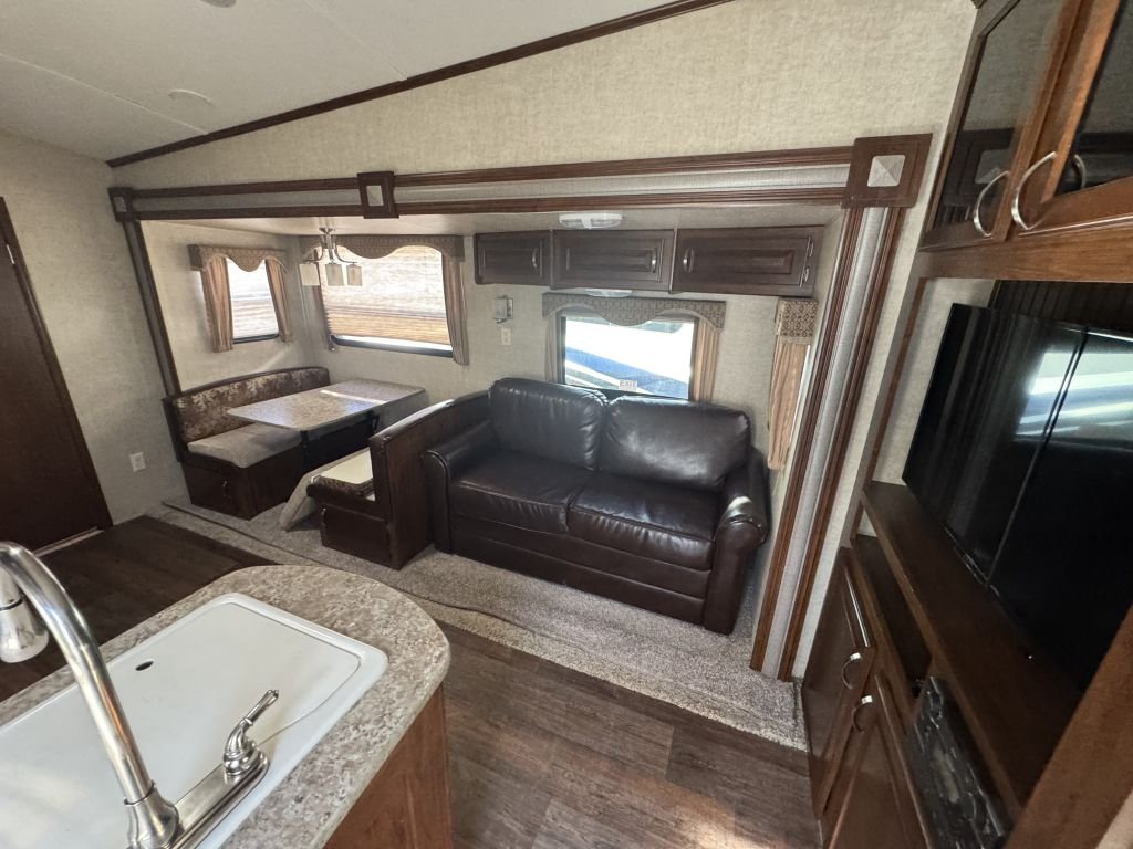 The 2014 Keystone Laredo 280SBH is a family-friendly fifth wheel that delivers a great balance of space, towability, and comfort. With a well-designed bunkhouse layout, opposing living space, and solid construction, this unit is ideal for families or anyone looking for an affordable, feature-packed RV.
