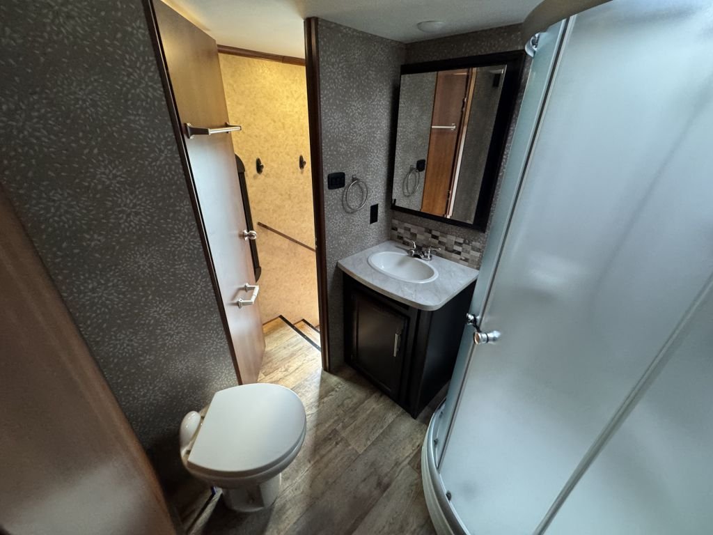 The side-aisle bathroom offers residential comfort and easy access from both the hallway and bedroom. You’ll find: