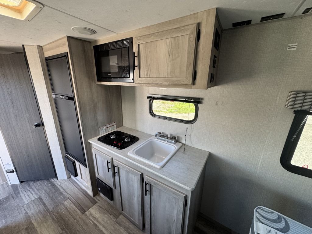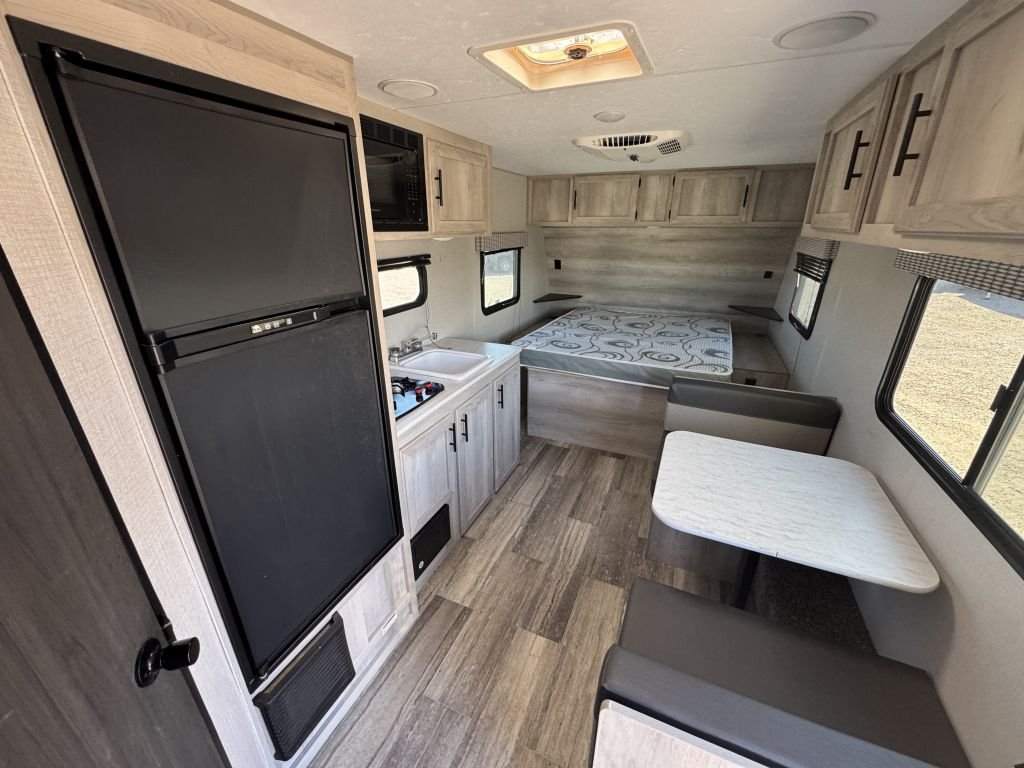 This used 2021 K-Z Sportsmen 160QB is the perfect travel trailer for couples or solo campers looking for a lightweight, easy-to-tow RV that still has all the essentials. With its queen bed, compact kitchen, cozy dinette, and private bathroom, it’s built for simple, comfortable adventures—at an affordable pre-owned value.